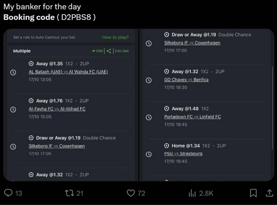 你很容易就会看到许多玩家,在像 📱X (Twitter),📱Telegram 或是 📱Facebook 等社群平台上,分享各家平台不同类型的 Booking Code。同时有更多的玩家,在社群上追逐 KOL 的分享贴文、复制这些被分享出来的 Code。尤其是接近周末,当主要赛事即将来临的时候,这样的状况更是火热。